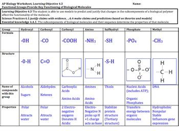 Using Functional Groups Worksheet in AP Biology