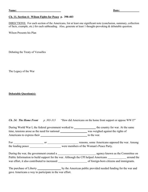 Wilson Fights for Peace Worksheet Answers